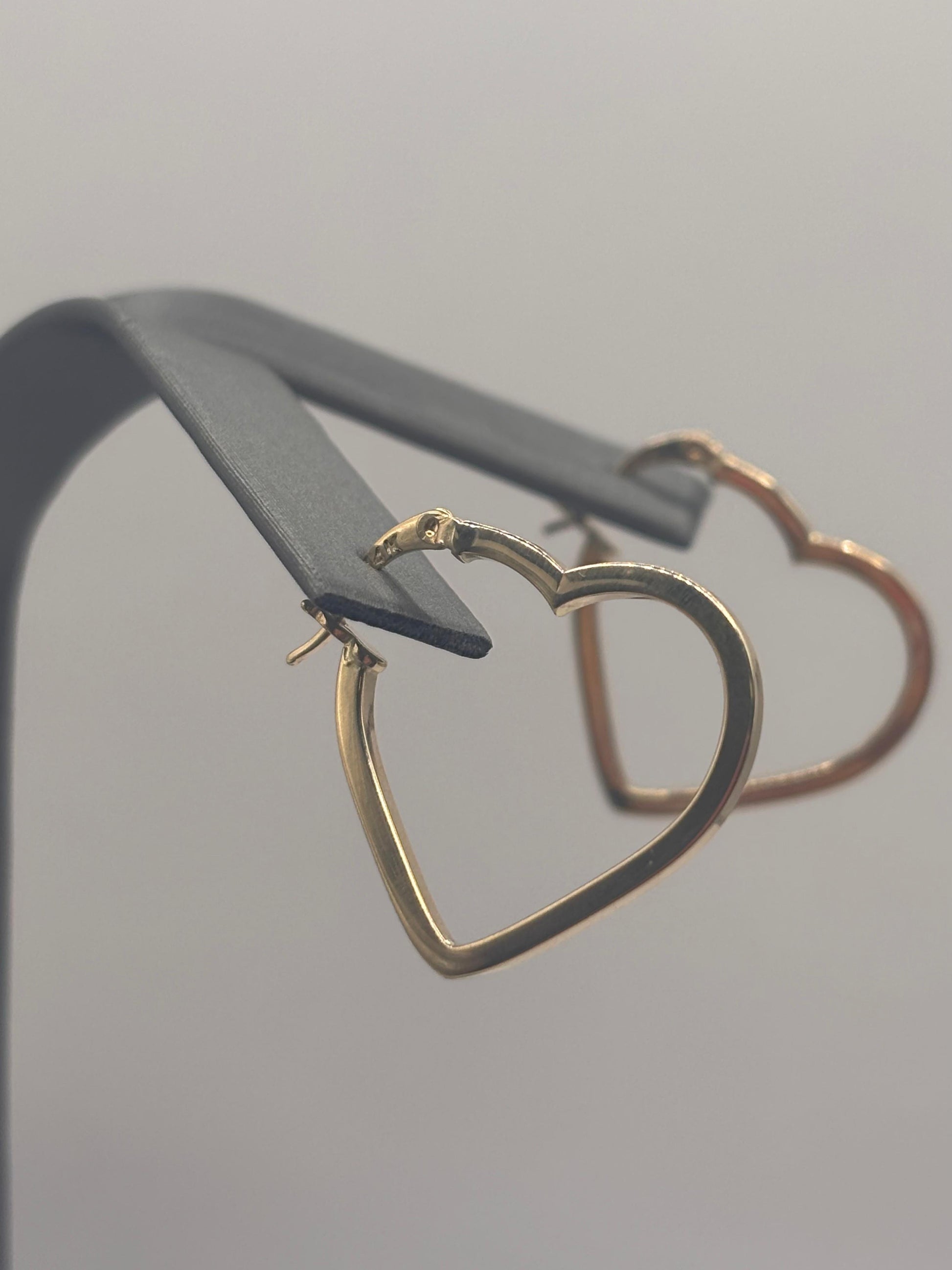 14k heart hoops